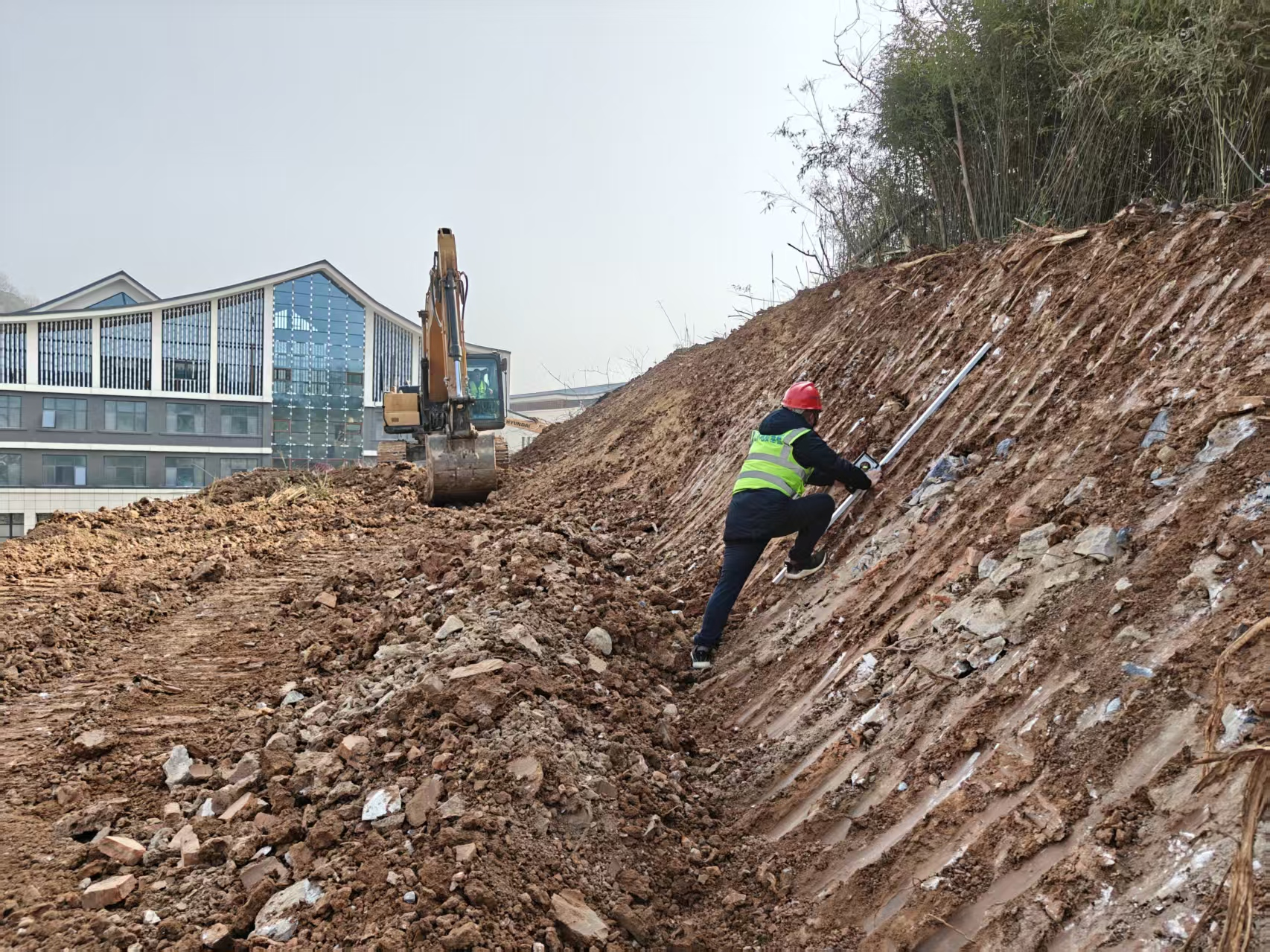 春寒料峭,项目现场已是一片繁忙。节后复工以来,项目部迅速收心归位,全力投入边坡治理攻坚与地灾隐患消除。施工人员正加紧进行边坡削坡、坡面清理、锚杆钻孔及格构梁钢筋绑扎等工作,技术员全程盯控成孔角度与注浆密实度,严把工序质量关。专职安全员加密边坡监测频次,实时排查危岩浮石,确保施工安全无虞。